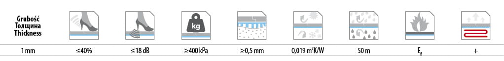 • Bardzo niski opór cieplny, a więc idealna do ogrzewania podłogowego